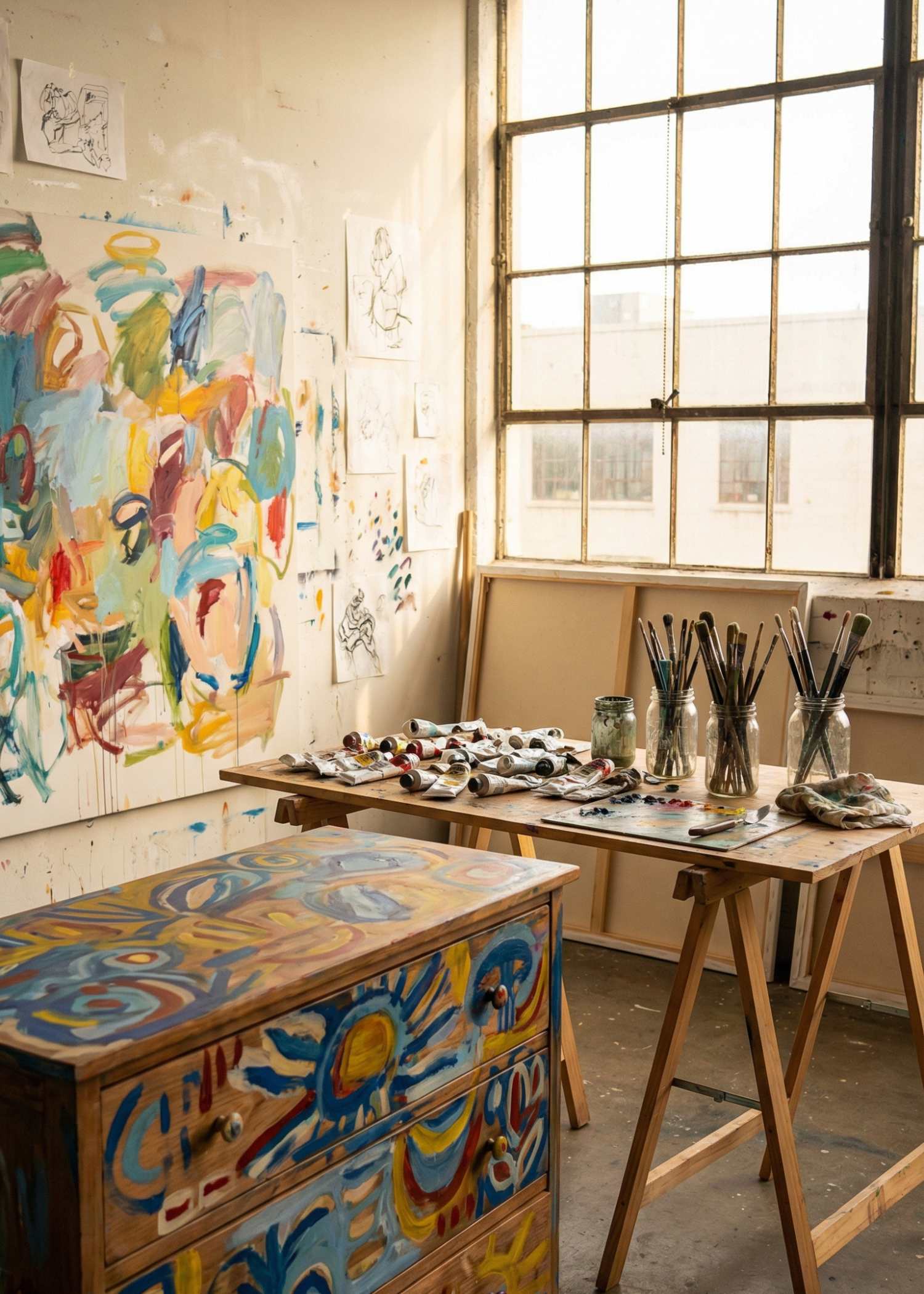 - Peintures murales et fresques artistiques — Création de décors peints sur-mesure pour sublimer vos murs, du trompe-l’œil réaliste aux compositions abstraites contemporaines adaptées à votre univers